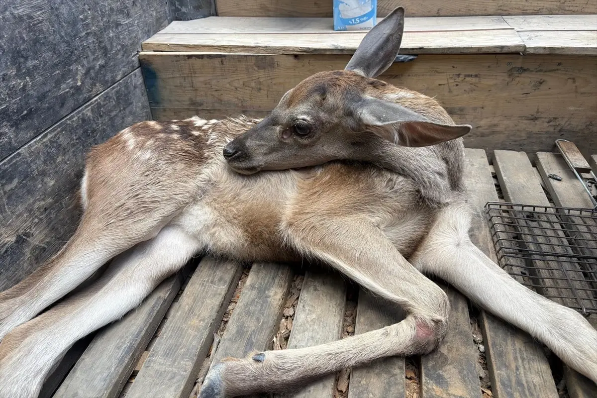Bolu’da ormanlık alanda yaralı halde bulunan geyik yavrusu muhafaza altına alındı.