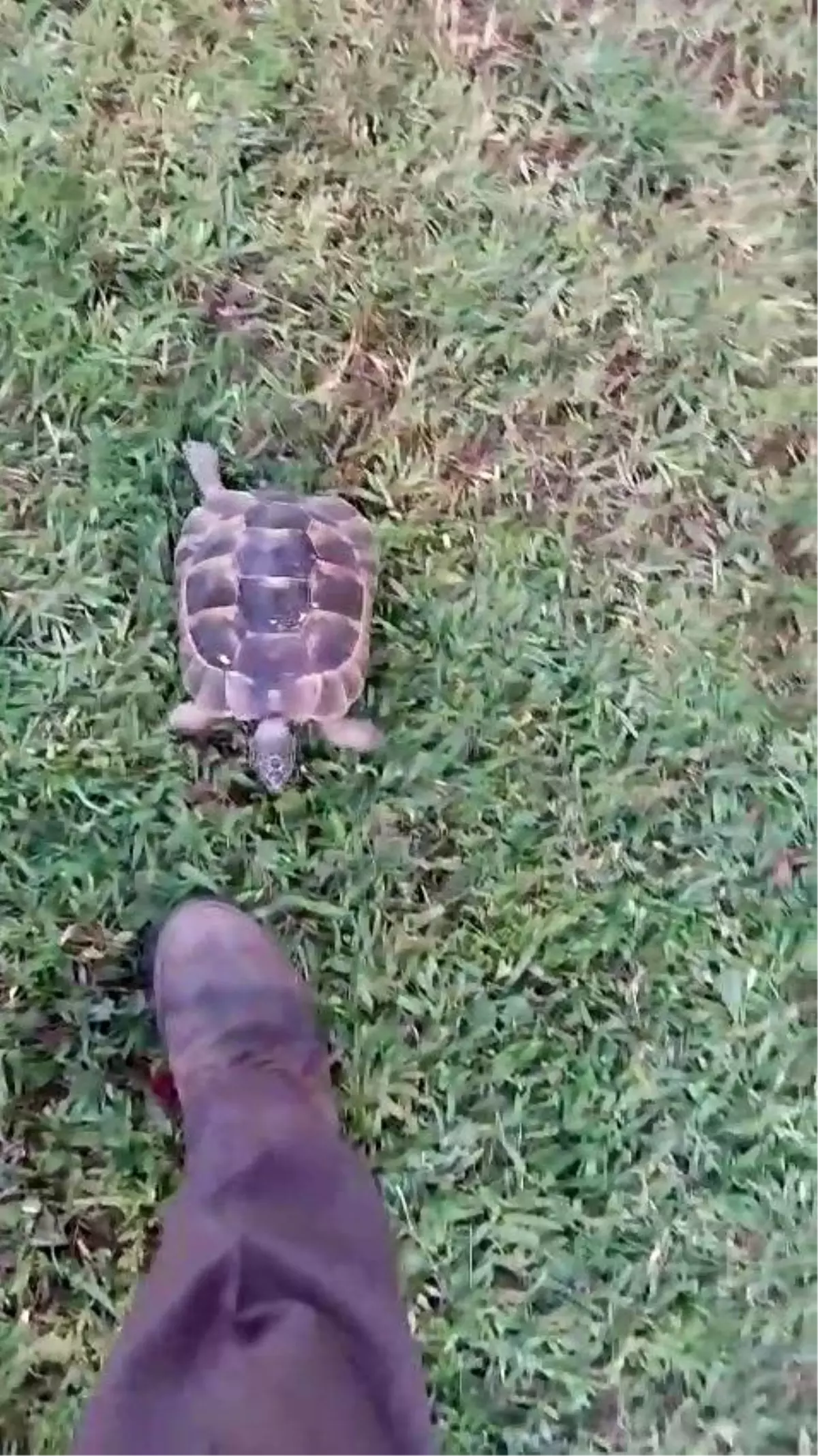 Bursa’da bir villanın bahçıvanlığını yapan vatandaşın peşini bırakmayan kaplumbağa, herkesi gülümsetti. Kaplumbağa ile bahçıvanın günahsız dostluğu görenleri kıskandırdı.