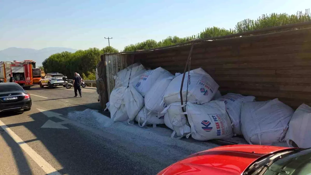 Bursa’nın Orhangazi ilçesinde plastik hammadde yüklü kamyon devrildi.