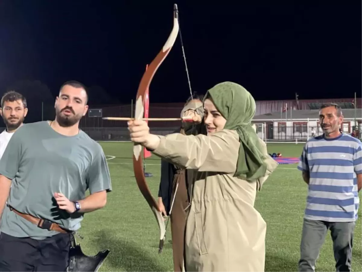 Bilecik’in Gölpazarı ilçe Kaymakamı Feyza Parıltı Kılıç yaz spor okulları kapanış programında ok atarak maksadı 12’den vurdu.